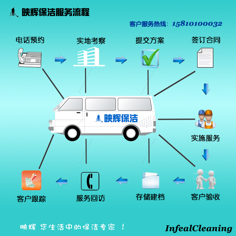 北京舒特是一家綜合性的通州區(qū)專業(yè)保潔公司,目前主營業(yè)務(wù)有:家庭保潔、開荒保潔、地毯清洗、大理石打磨拋光,托管保潔等清潔服務(wù),映輝所有保潔人員均經(jīng)過專業(yè)的保潔培訓(xùn),嚴格的質(zhì)量過程控制系統(tǒng)確保始終如一的優(yōu)質(zhì)服務(wù),下面映輝北京保潔公司服務(wù)流程向大家介紹下:
